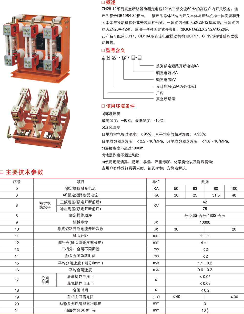ZN28/ZN28A-12/T1250-31.5戶內(nèi)交流高壓真空斷路器