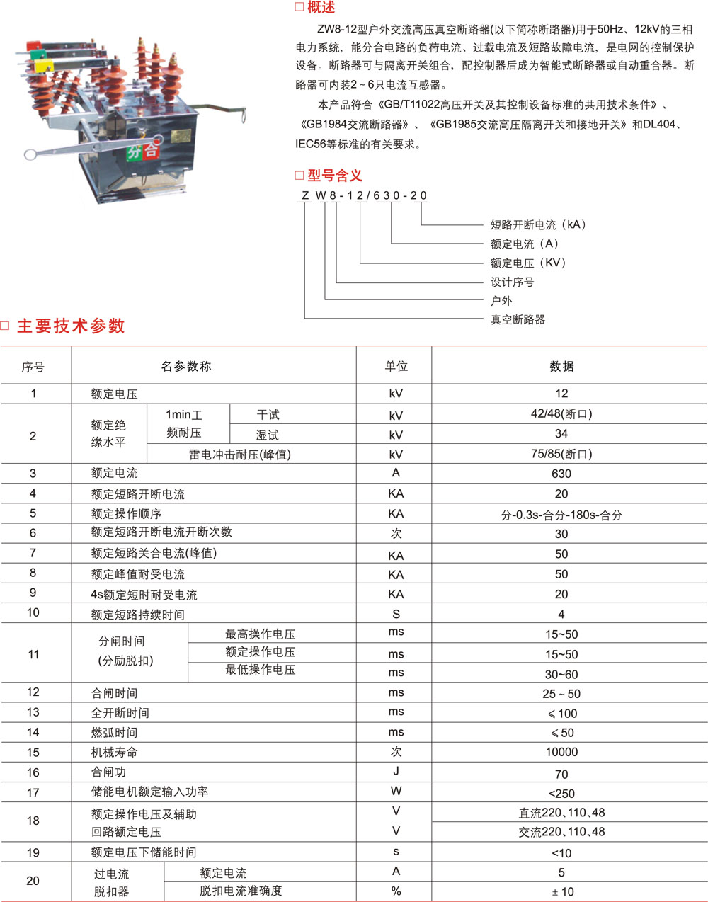 ZW8-12/630-20戶內(nèi)高壓真空斷路器