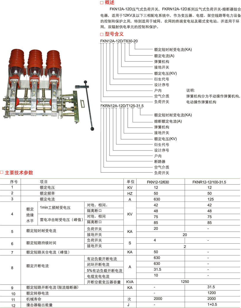 FKN12A-12氣壓式壓負(fù)荷開關(guān)、FKRN 12A-12氣壓式壓負(fù)荷開關(guān)及熔斷器組合電器