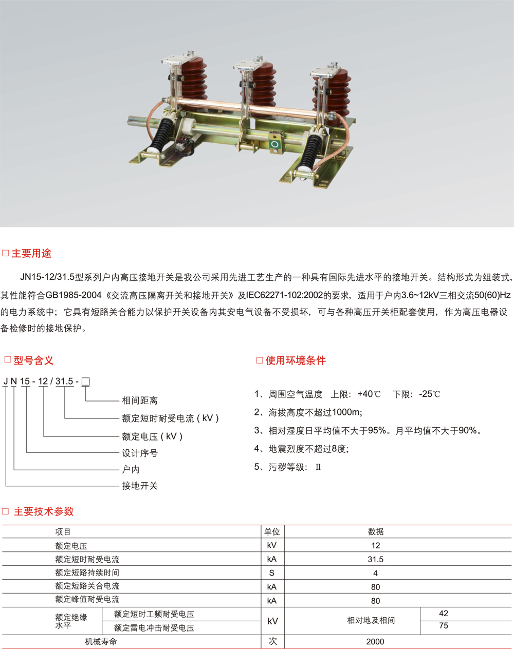 JN15-12型戶內(nèi)高壓接地開關(guān)
