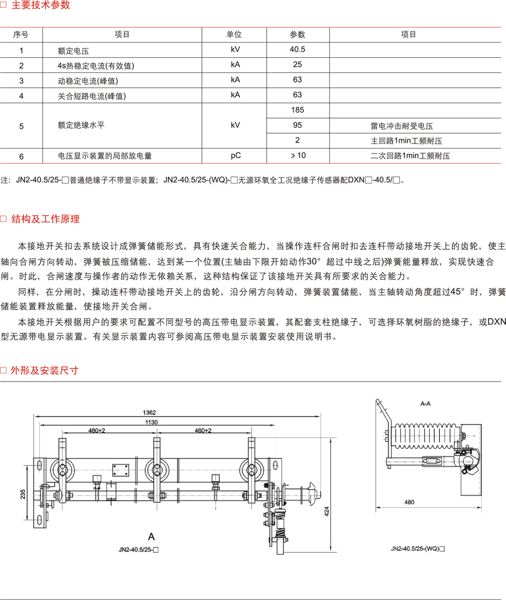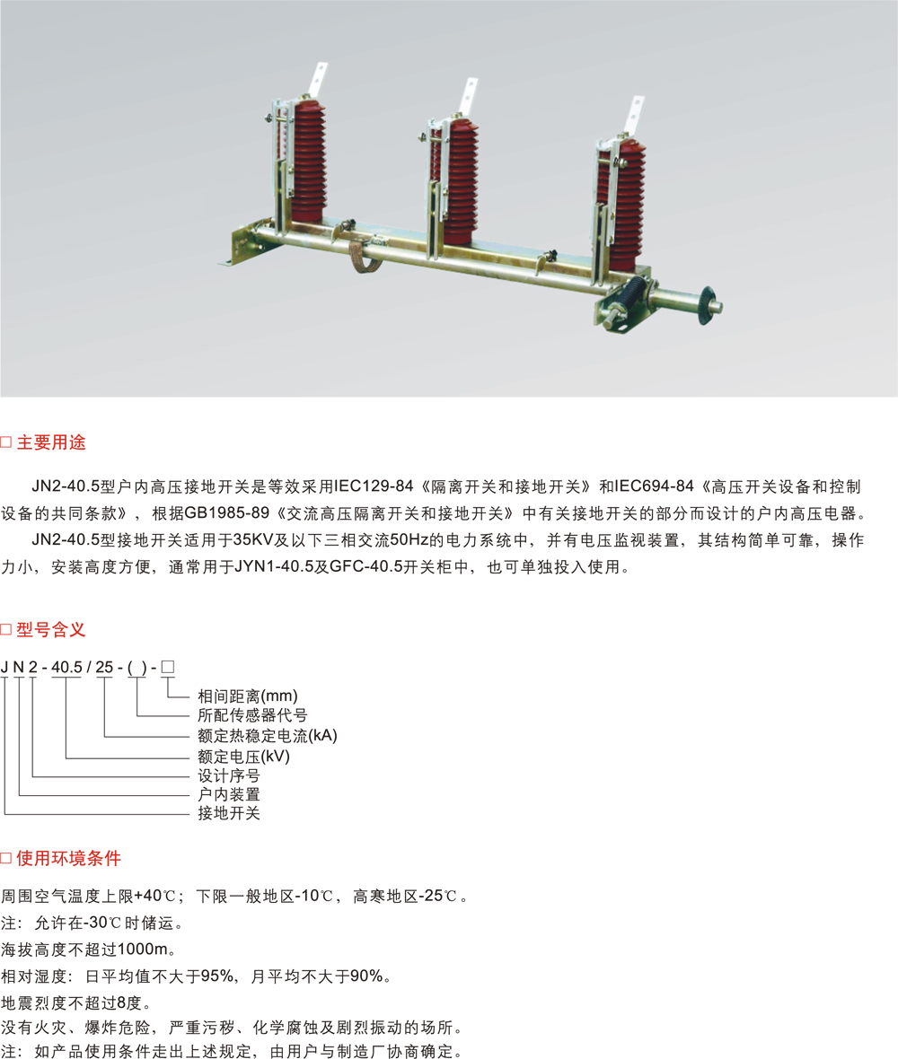 JN2-40.5型戶內(nèi)高壓接地開關(guān)