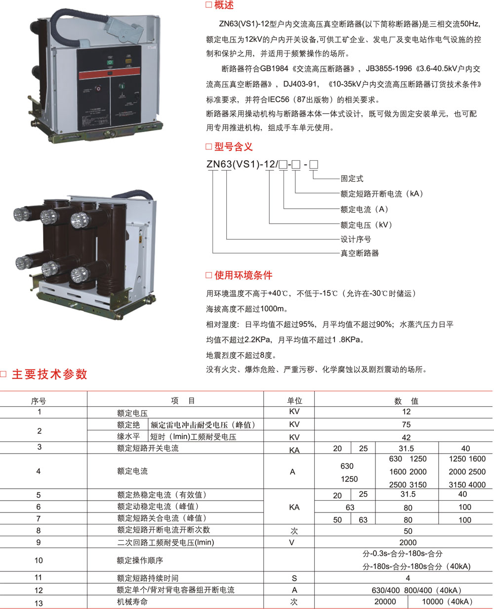 ZN63(VS1)-12戶內(nèi)交流高壓真空斷路器